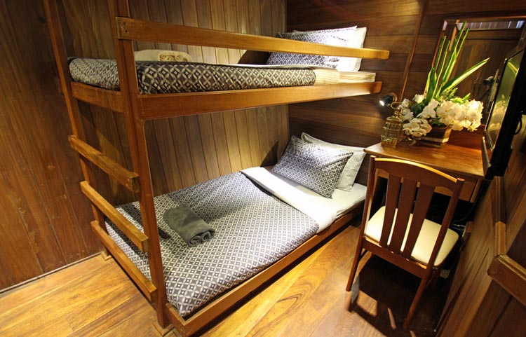 Burma & Similans Deep Andaman Queen offers luxury Twin & Double Cabins as well as more affordable Triple & Quad. She is a relatively new boat built in 2012. Spacious, luxurious and good value.