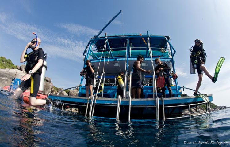 The 1st dive is at 7am. Dive time is 55 min followed by a 5 min safety stop. On the majority of dives you will be picked up by the Dolphin Queen or the inflatable tender. This makes for easy, stress free diving. There is a limit of 4 divers to 1 dive guide. There is a 3hr surface interval for, reading, relaxing on the sundeck or in your cabin as you wish.