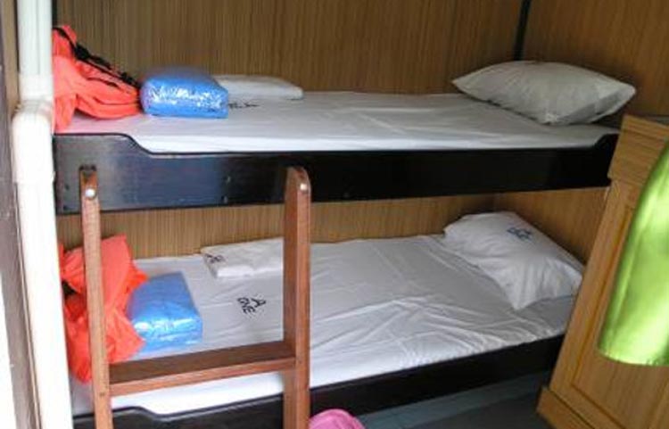 MV Sea World accomodates 20 guests in simple twin or double air conditioned cabins. Two cabins are en-suite. The rest use shared bathroom facilities. (8 bathrooms & showers).