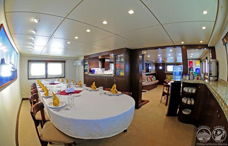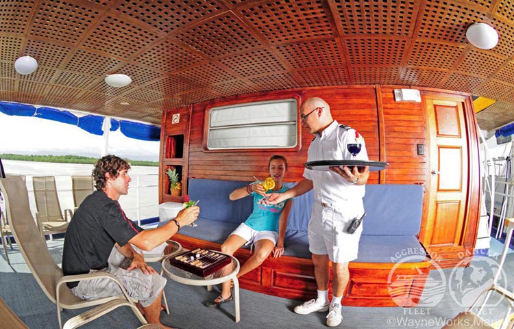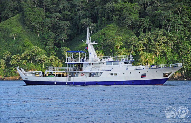 Okeanos Aggressor is a 33.5m top quality liveaboard yacht offering year round diving cruises to the remote Cocos Island. She is a member of the well respected Aggressor Fleet and offers 10 luxury staterooms for her 22 guests.