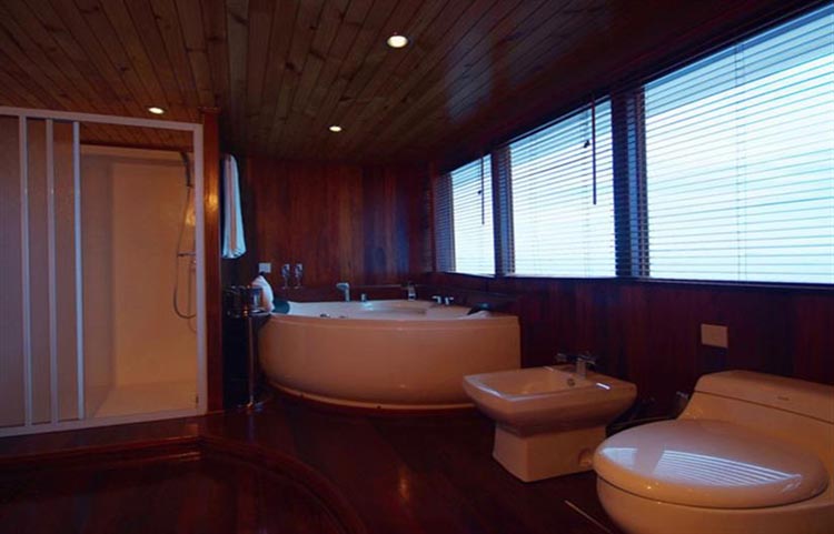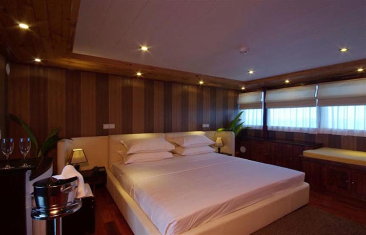 As a member of the luxury Constellation Fleet you expect Leo to be well run and luxurious. Her 35m length accomodates 20 guests in 10 cabins, 6 twin and two double standard cabins, one upper deck room and one suite room. All cabins have individual air conditioning, TV, DVD / CD, Mini Bar, Safe & en-suite bathroom. The Suite cabin has a private jacuzzi also.