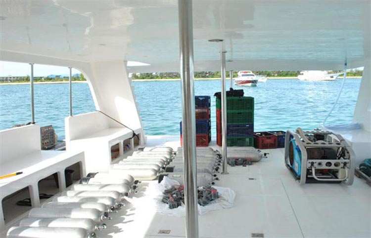 A Modern Spacious VesselEmperor Voyager is a modern spacious vessel with airy bright cabins. Her comfortable sofas (indoor and outdoor) are perfect for relaxing with an aperatif or beer after a day of tropical underwater exploration.