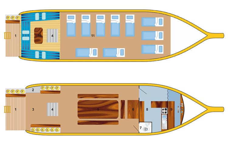 Nangnuan accomodates 8 guests on a communal covered sleeping deck. Please note minimum age is 15yrs.