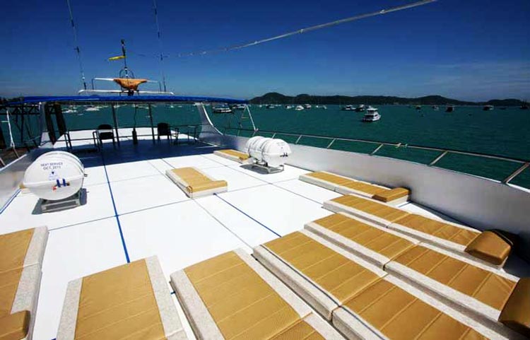 The diving is at The Similans for the first two days. You do 4 dives on the first day with a sunset dive. The second day you do 4 further dives including one night dive. As is standard in areas with so many great dive sites the sites are chosen by the experienced crew and skipper based on the prevailing currents and number of other diving vessels.