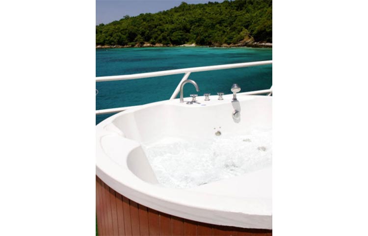 Thai Aggressor acommodates 16 guests in a range of spacious twin and double luxury en-suite cabins complete with TV's and hard disks of entertainment.